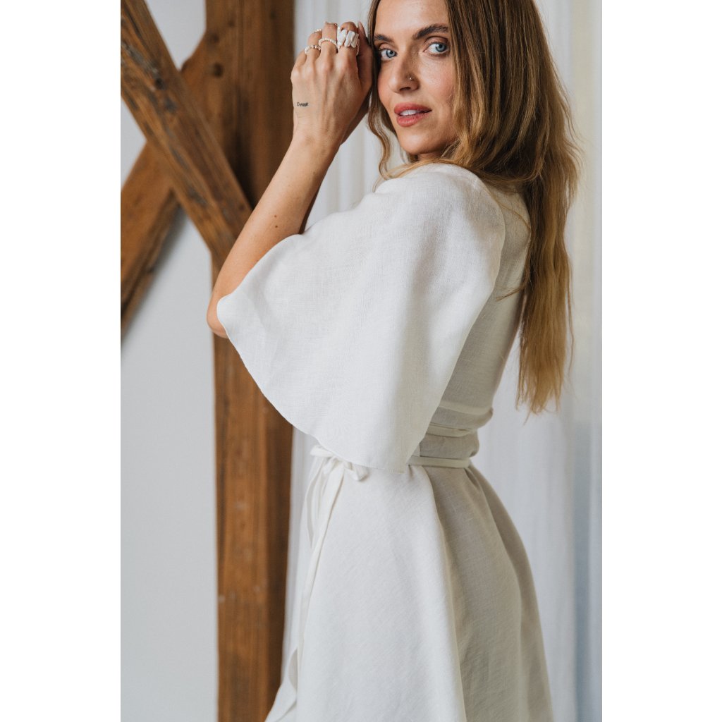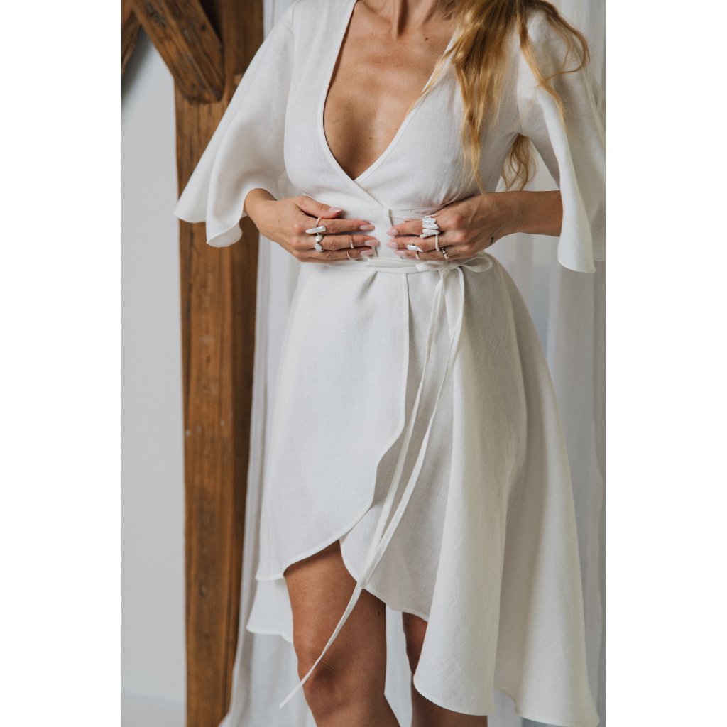 ANNA dress short, zvonečkový rukáv, točivá sukně, zavinování začíná už pod prsy. Velice ženské .