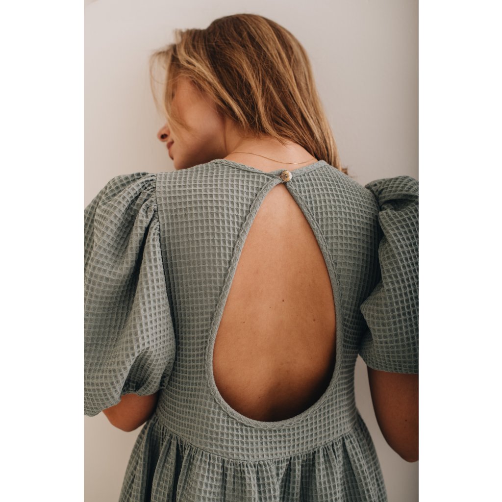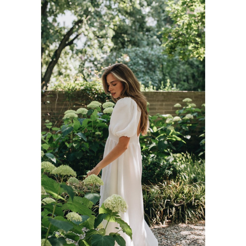 In a wonderland. To wander around an enchanted garden and fall down the rabbit hole into a whole new magical world. All this and more is our new dress Alice. With a balloon sleeve and opening on the back.