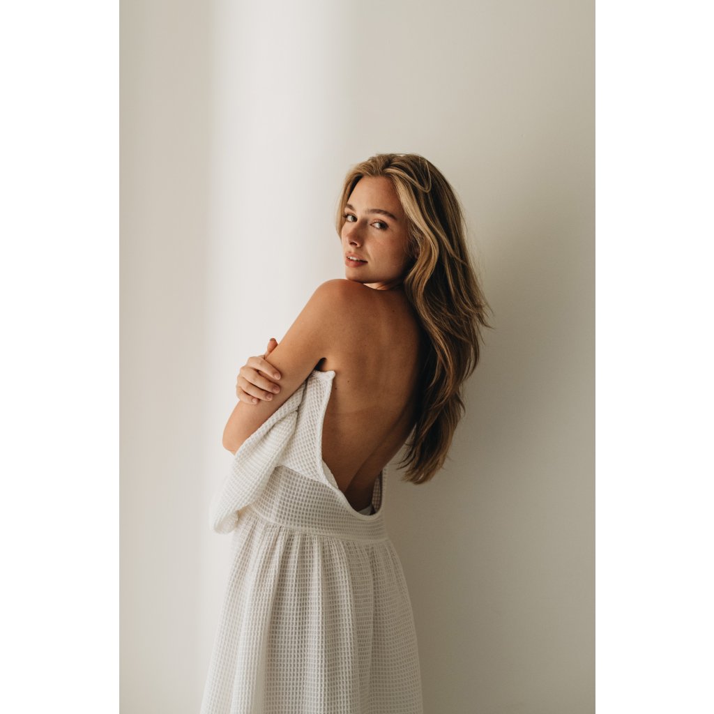 The open back can be either of a size as on the picture or over the whole back. In case you wanted the full open back option, please note that below the order.