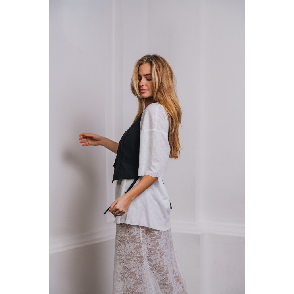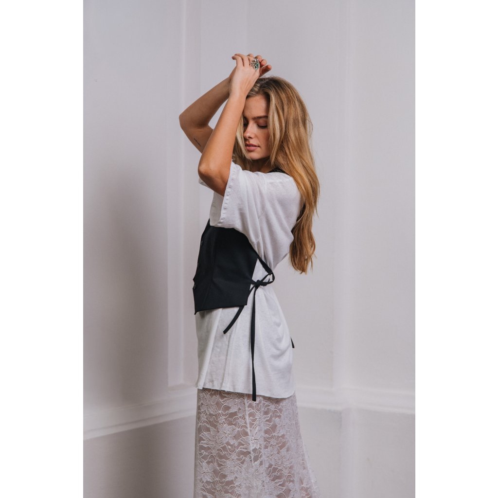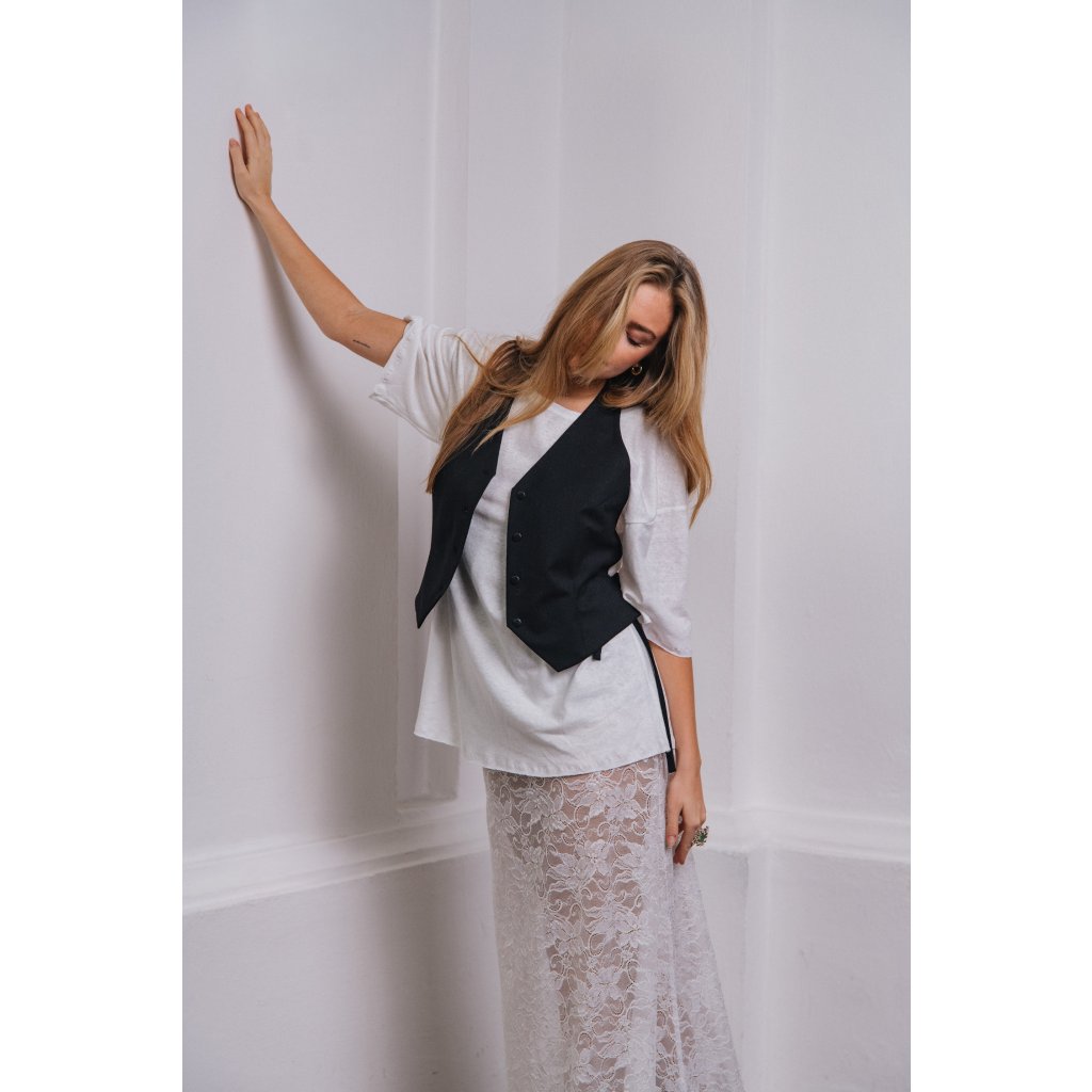 Veru běžně nosí velikost S/XS a je vysoká 171 cm. Jste-li žena hodně drobná napište prosím do poznámky u objednávky Vaše míry (prsa, pas, boky, výška). Triko můžeme případně malinko upravit.