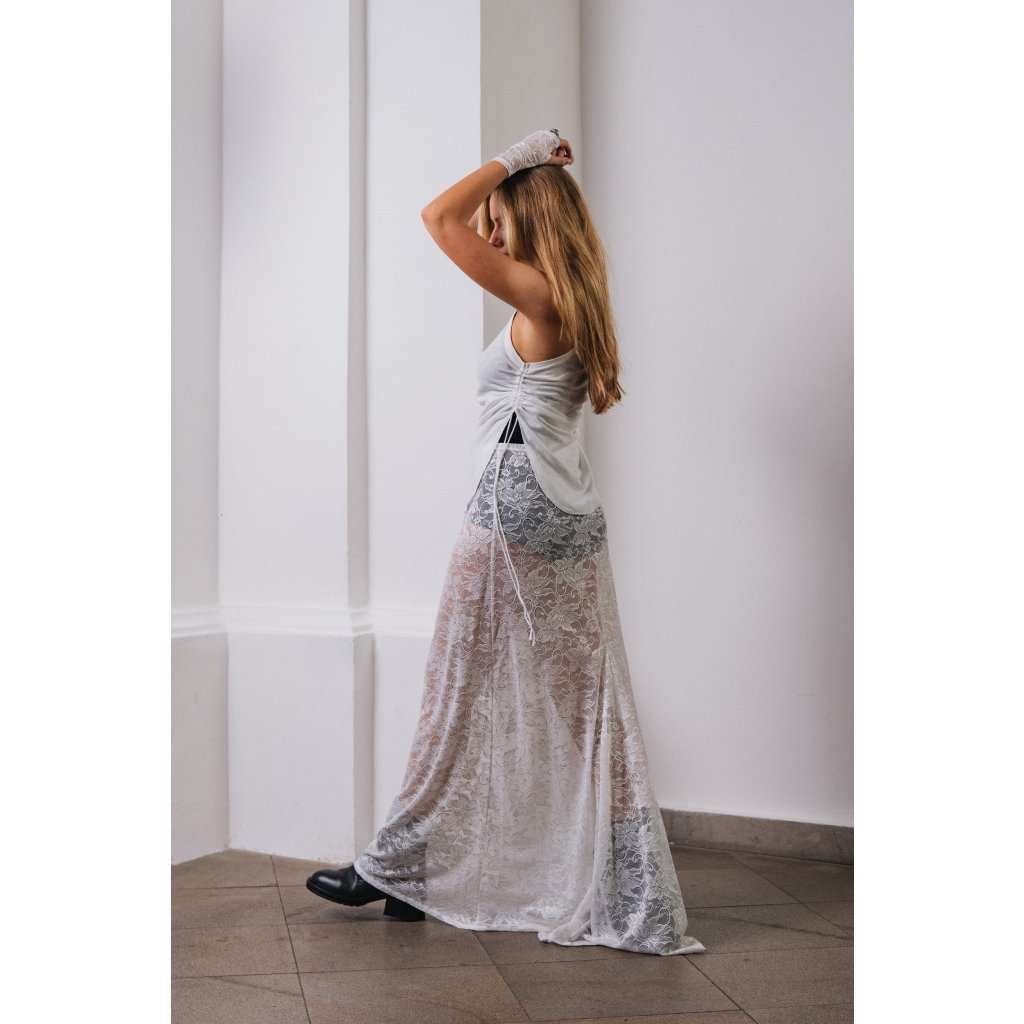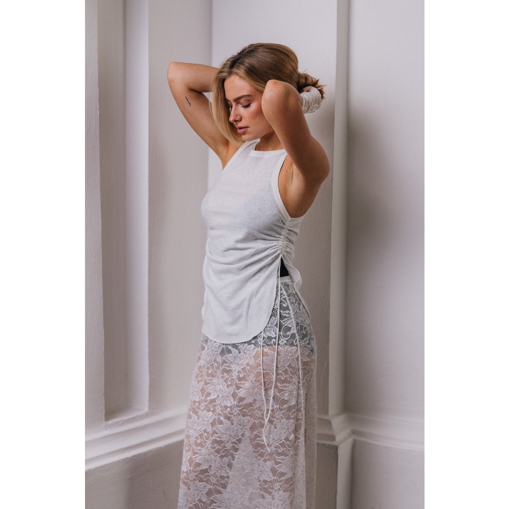 Tílko se stahováním v bočním švu. záleží na vás, zda ho stáhnete nebo necháte povolené. Tílko šijeme ze dvou materiálů. Bavlna/len (černá, bílá) a tencel/vlna (černá, ivory, červená, antracit)