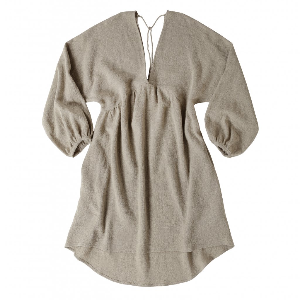 Šaty Zuli v boho stylu. Jsou oversize ( pojmou i těhotné bříško) s volným rukávem ve spodní části nabíraným do nepružné jemné manžety. "V" výstřih na zádech i vepředu, který umožňuje i případné kojení. Šaty se zavazují za krkem na šňůrku, takže si můžete vybrat jak velký výstřih skutečně chcete. Vyrábíme je z krepového lnu, který je oproti klasickému lnu těžší, ale přesto prodyšný. Minimálně se mačká.